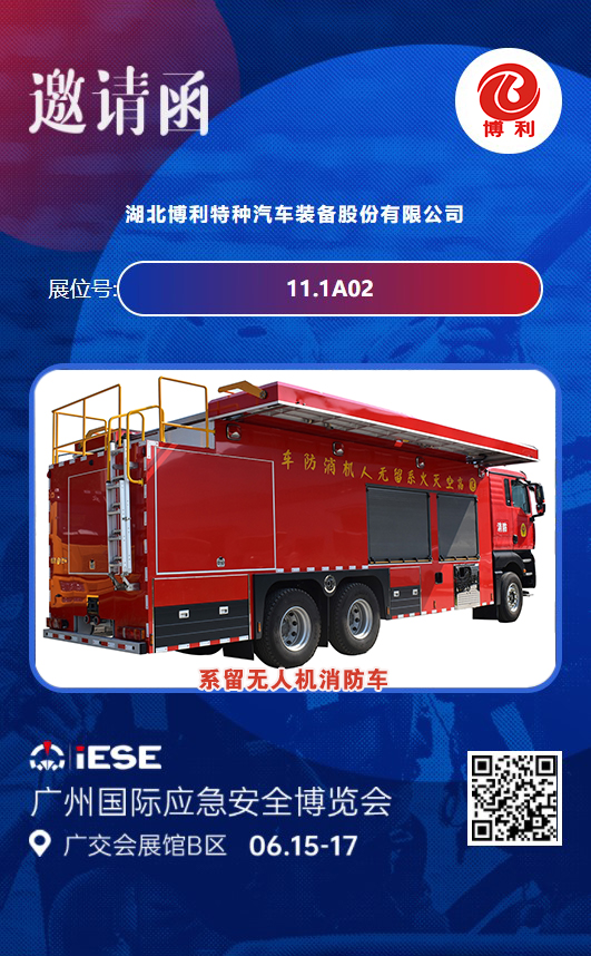 为全面贯彻落实全力防控重大安全风险,奋力推进应急管理体系和能力现代化的指示,由广东省应急管理厅、广东省工业和信息化厅指导,中国机械工业安全卫生协会、广东省应急管理服务协会、广东省安全生产协会、广东省应急协会、广东省消防协会、广东省应急产业协会共同主办,中国机械国际合作股份有限公司、广州立升展览服务有限公司、广州国坤立升展览有限公司联合承办的“2023广州国际应急安全博览会”将于2023年6月15-17日在广州广交会展馆隆重举行。3044永利展出新研制出来的高层系留无人机消防车。