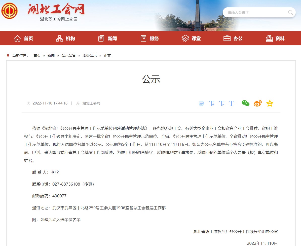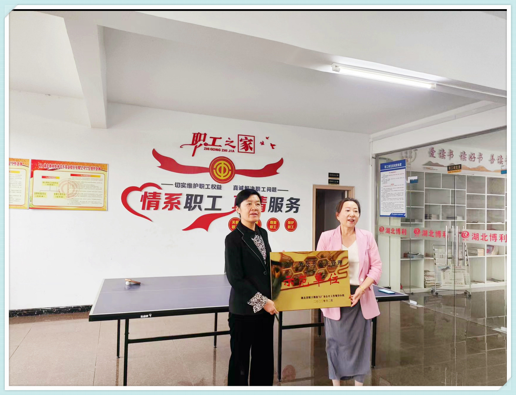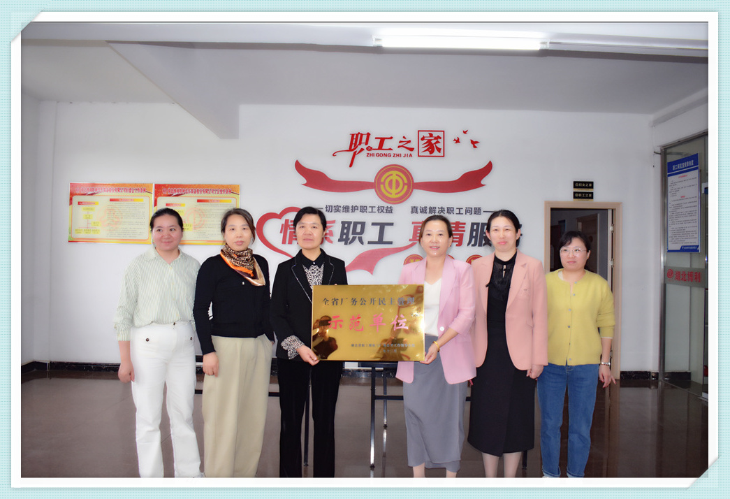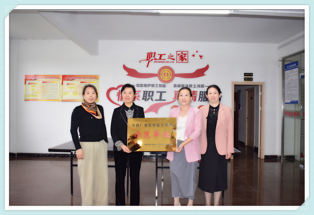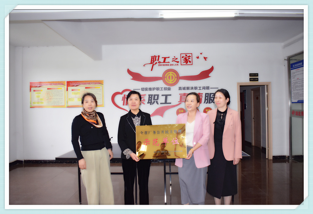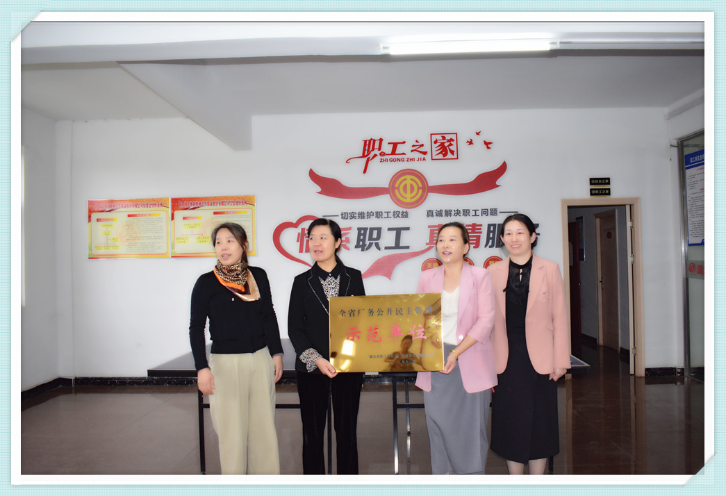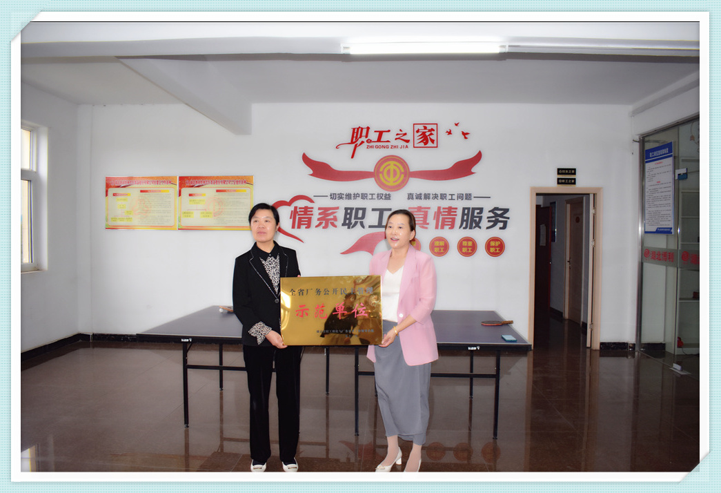 热烈欢迎区总工会党组书记、常务副主席秦光芹一行莅临3044永利,3044永利董事长程钰涵接待并接受秦光匠主席颁发的“省厂务公开民主管理示范单位”奖牌。